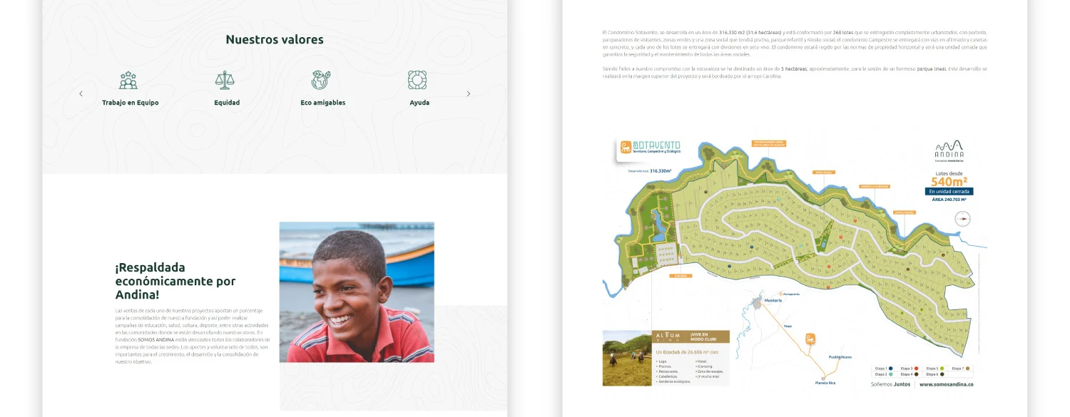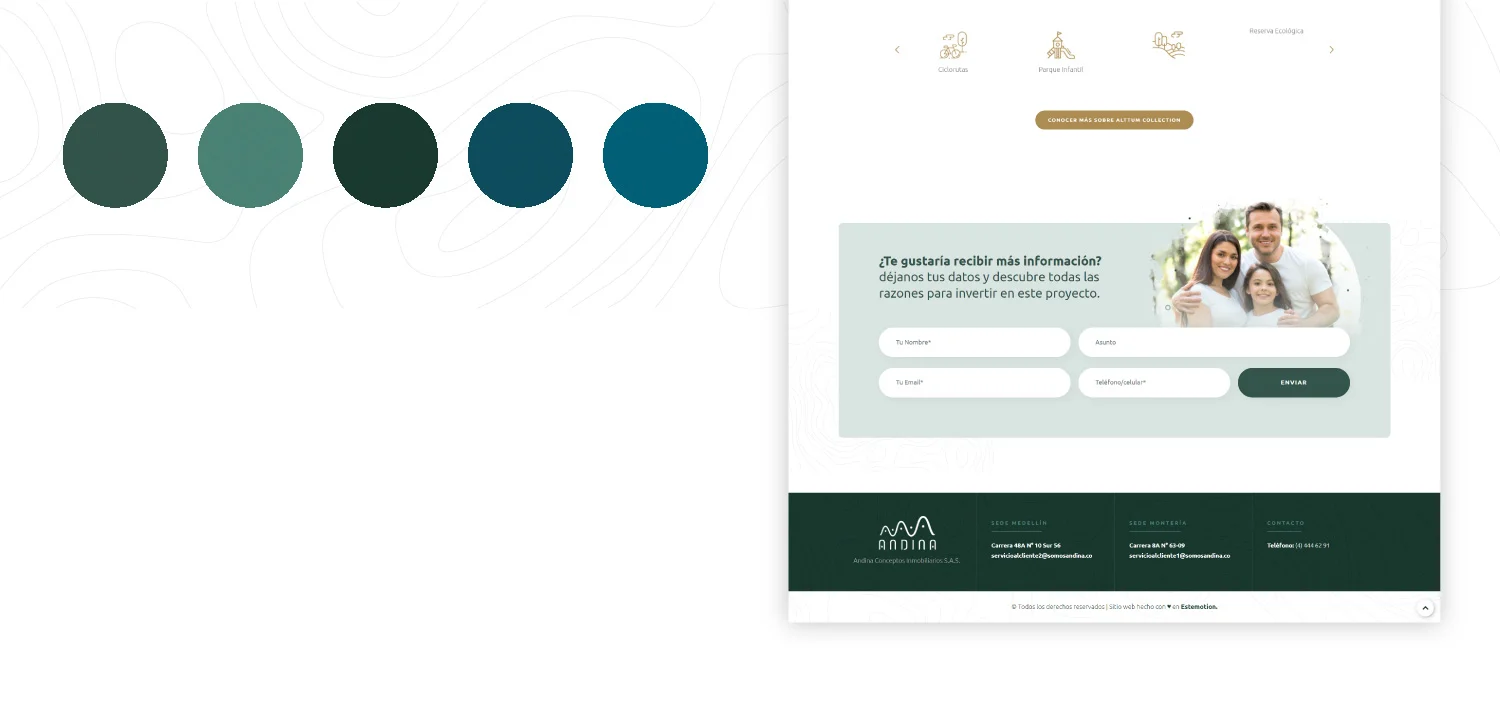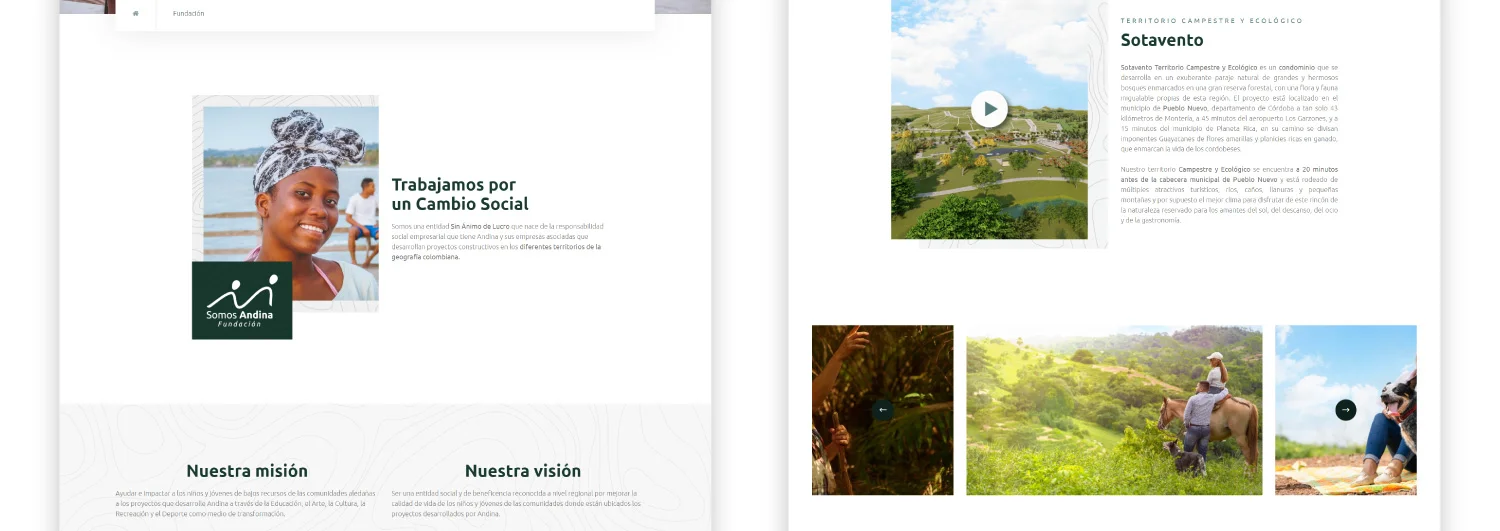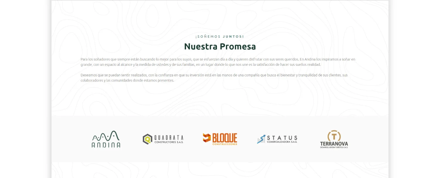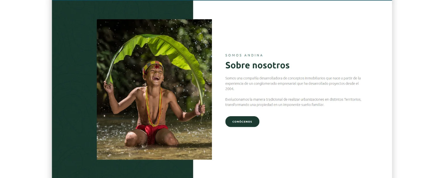 Andina es una empresa desarrolladora de proyectos campestres que necesitaba un sitio web capaz de presentar sus proyectos de forma clara, visual y confiable, facilitando la exploración para personas interesadas en invertir o vivir en entornos naturales.