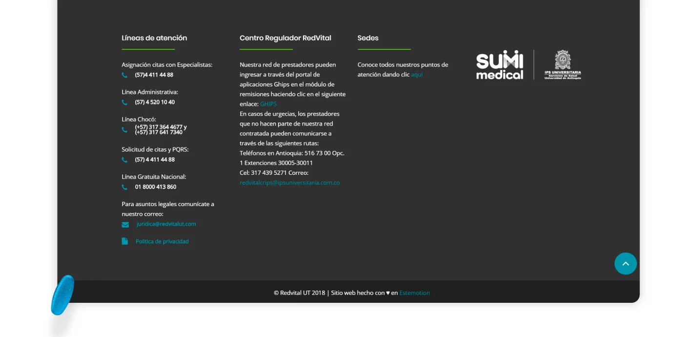 Redvital fue una unión temporal conformada por Sumimedical S.A.S. y la IPS Universitaria, creada para prestar servicios de salud a los afiliados del Fondo Nacional de Prestaciones Sociales del Magisterio en el departamento de Antioquia.